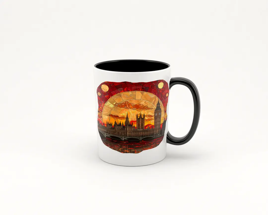 Experimenta la fusión perfecta entre arte y funcionalidad con esta excepcional taza que presenta un atardecer en Londres al estilo vitreaux gótico. El diseño impresionante y detallado captura la icónica silueta del Big Ben y el Palacio de Westminster, envueltos en los cálidos y resplandecientes colores del atardecer, enmarcados por un majestuoso efecto de vidrieras góticas. Fabricada en cerámica de alta calidad, esta taza no solo es duradera y resistente, sino que también garantiza una excelente retención de calor, manteniendo tus bebidas a la temperatura perfecta durante más tiempo.
